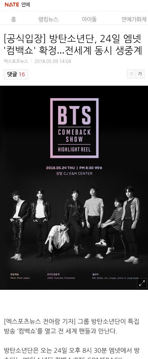 M넷 컴백쇼 관련 네2트 기사올라옴(39위)