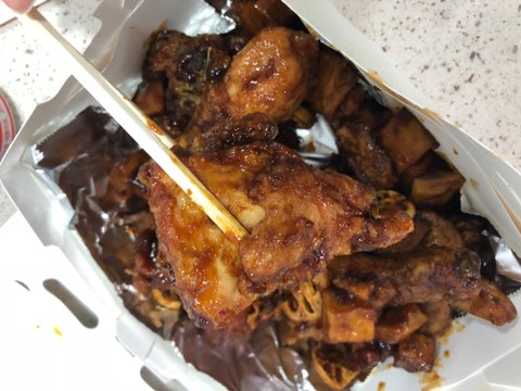 우선...간장소스 치킨으로 다른 간장소스 치킨에 비해 간장 조린맛? 불맛? 그런게 막 짜거나 그런게 아니라...은은하게 올라오는 짠맛?!ㅎㅎㅎ