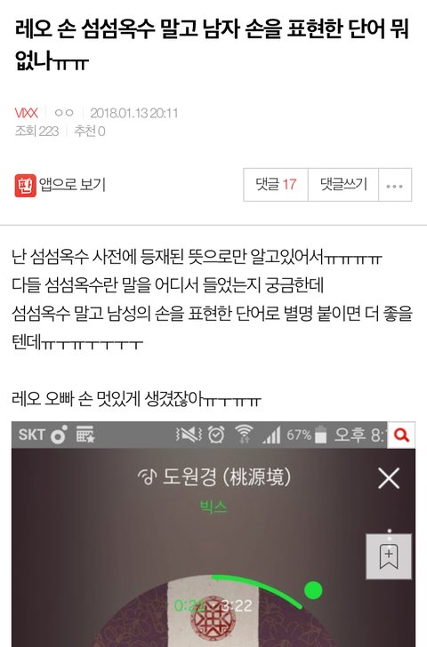 치면 나오는 애고 맨날 섬섬옥수 뜻이 뭐냐면서 왜 남자한테 그런 말을 쓰냐 뭐 이러는 앤데