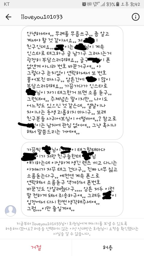 그러다, 17년 겨울..이젠 제 사칭 계정을 만들어 유명 아이돌 계정에 악플을 달고 다닌다는 제보를 받았습니다. 그래서 이젠 안되겠다 싶어서, 아이디를 삭제하고 바꿨습니다...