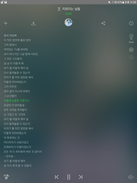 와 지워지는 날들 가사 너무 슬프다