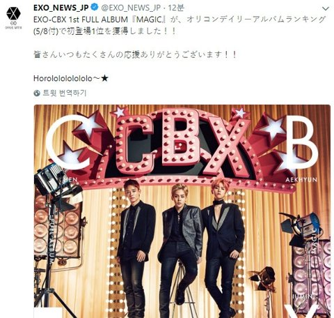 EXO-CBX『 MAGIC』 오리콘 데일리 앨범 랭킹 1위