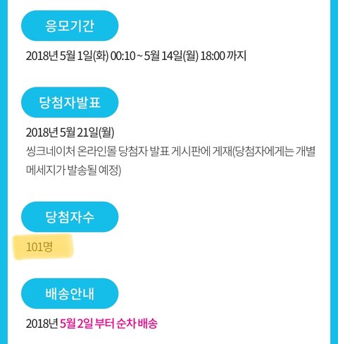 씽크네이처 팬싸 당첨자수 101명으로 늘어남