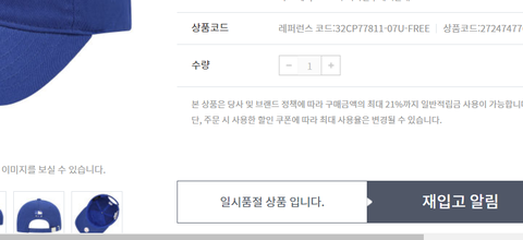 헐 시우민 볼캡 롯데면세점에서도 품절이다