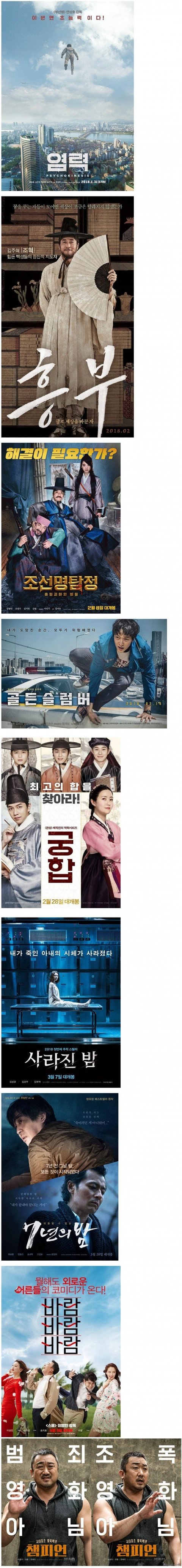 2018년 현재까지 개봉한 한국영화 숨막히는 라인업