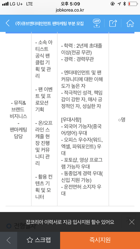 큐브 팬마케팅 직원 뽑는 중이네