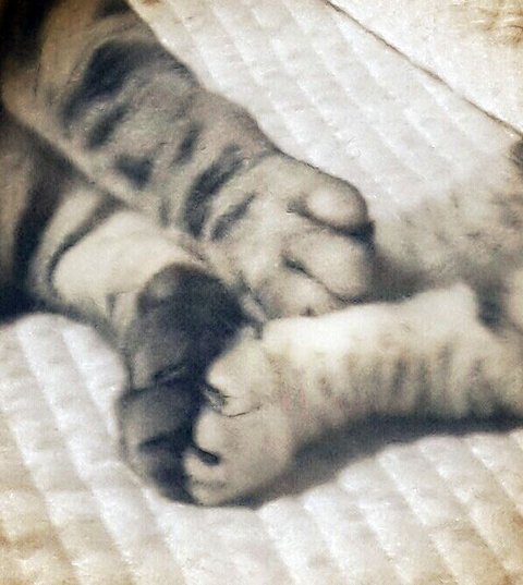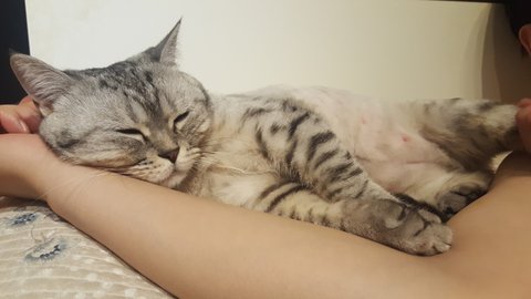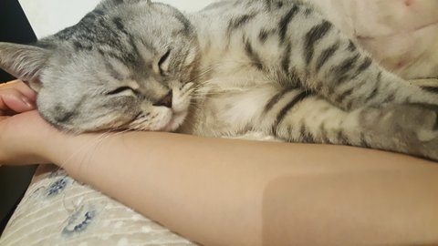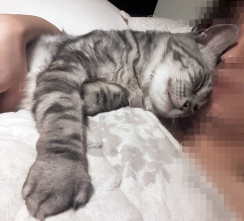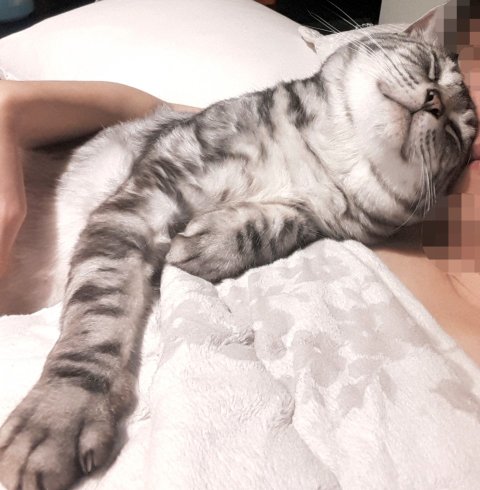 지친 야호는 남의 집사 팔에 눕습니다.