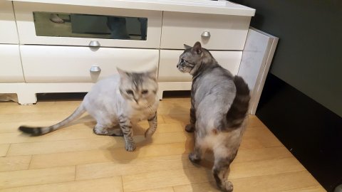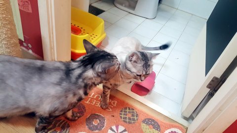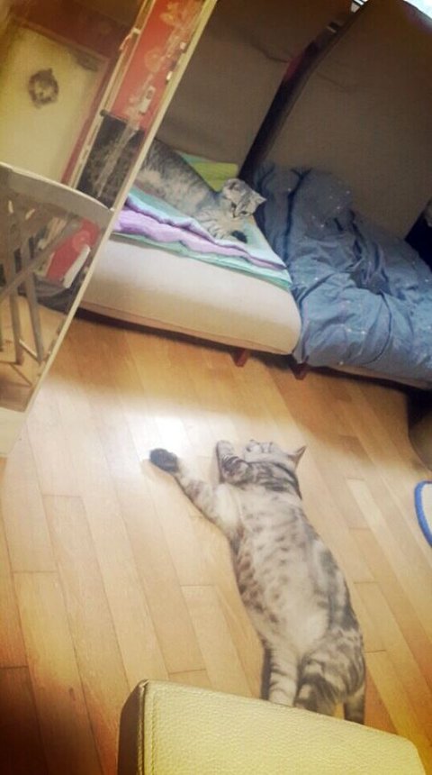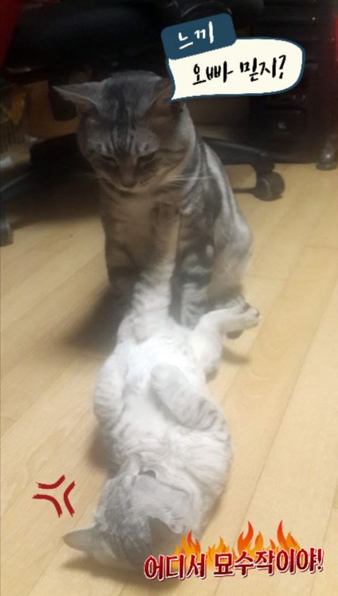 다른 고양이들을 엄청 좋아합니다.