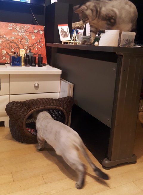 야호는 오자마자 좁디 좁은 집을 수사중입니다.