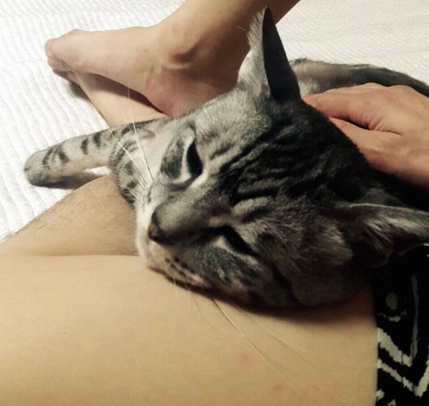 슬며시 옆에 와서 같이 눕습니다.
