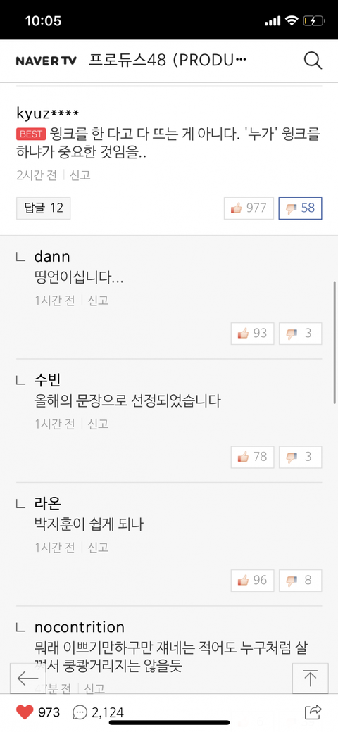 저 윙크한애들중에 반응오는 애 한명도 없잖앜ㅋㅋㅋㅋㅋㅋㅋ박지훈은 바로 그냥 윙크남 누구냐며 난리났엇는데