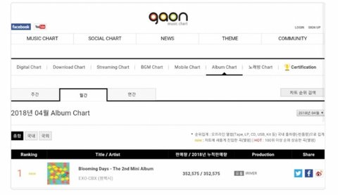 첸백시Blooming Days 2018년 4월 가온앨범차트 1위!!