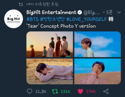 방금 컨셉 포토 떴는데 리트윗이랑 하트수 5분만에 저거 실화?ㄷㄷ
