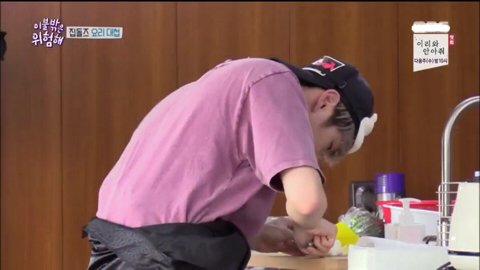 ㅋㅋㅋ약간 핑크끼도는 보라색옷! 그 큰손으로 조그만칼잡고 양파써는거 넘 기여웠닼ㅋㅋ