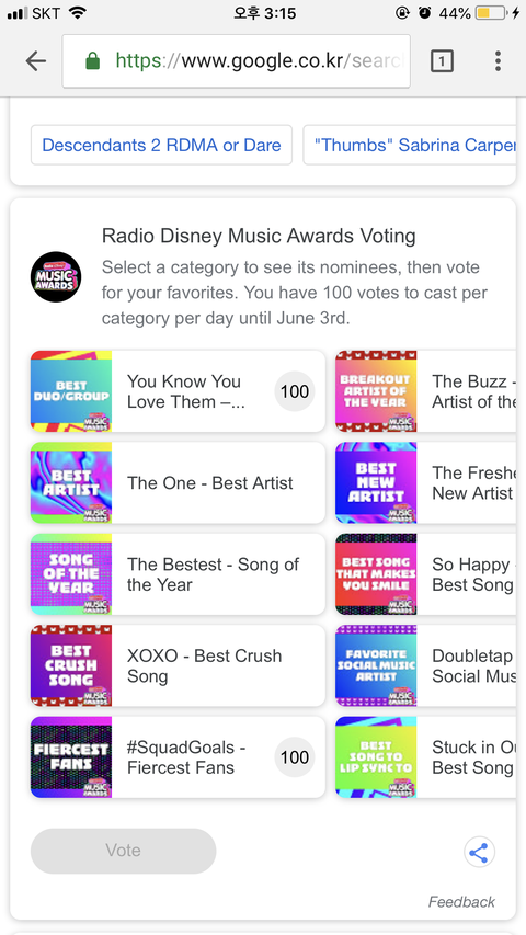 우리가 후보에 랭크된 부문이야 ㅋㅋㅋㅋㅋㅋㅋ