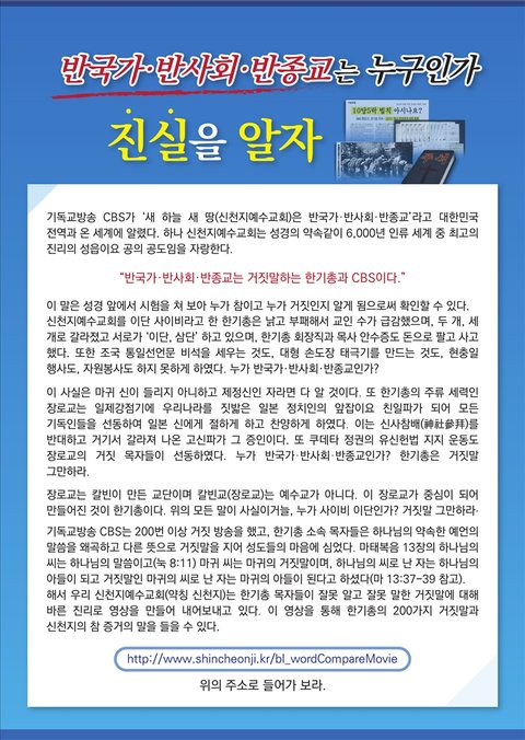 거짓말하는 한기총과 기독교 방송 CBS는 이제 거짓말은 STOP하고 회개하여 헌법을 지키며, 소중한 인권을 존중함이 마땅합니다!!
