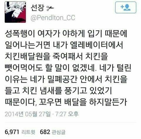 아니 여자가 불법촬영 찍히면 야동사이트 실검 1위찍고 남자가 불법촬영 찍히면 인터넷 실검 1위고? 성에 관련해서 당하는건 여자가 비교도 할 수 없을만큼 훨씬 많은데 여자들이 힘들다고 말하면 메ㄱ 페ㅁ 입에도 담기 힘든말만, 군대 안가면 조용히 해라 ㅅㄹㅊ 이 짓거리나 하고. 남자가 힘들다고 말하면 인정하는 분위기? ㅍㅁ들은 남자들한테만 뭐라그런다고 ㅋㅋㅋㅋ? 생각을 해봐 좀. 애초에 먼저 당하고 맨날 불법촬영 의식하면서 살아야되는건 누구?ㅋ 군대나 가라고? 그 2년 얼마 갔다오는거 돈도 받잖아. 우린 애 안낳고 싶어도 강제로 약 40년동안 생리를 해야돼요ㅋㅋㅋ 지들이 지금껏 여자 비하해 왔으면 배려좀 해줘 ㅋㅋ 솔직히 처음부터 남자가 여자 존중해줬으면 여자들이 이렇게 빡쳐서 힘 모을 일이 있겠음? 그랬으면 여성남성끼리 싸울일이 있겠냐고. 서로 존중좀 해주면 안돼??
