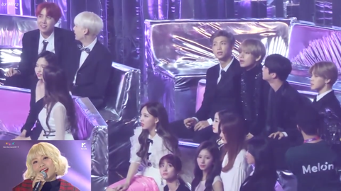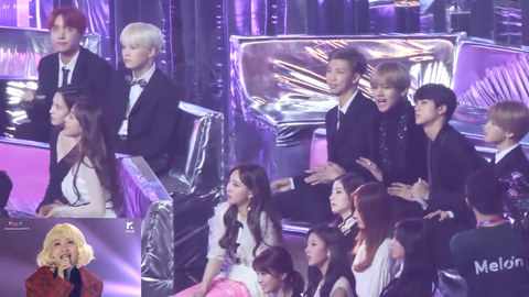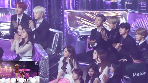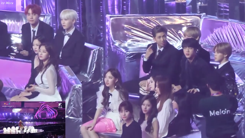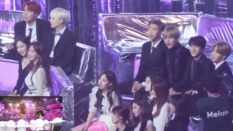그리고 이건 작년 멜뮤 때 볼빨간사춘기 분들 무대 보는 방탄 멤버들 영상인데