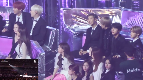이건 골든디스크 시상식때 워너원 무대 감상하는 모습인데