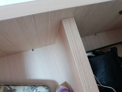 새 화장대는 이사도중 다리가 부러져 인부가 임의로 못을 받아 내부 서랍장까지 대못이 튀어나와 있었습니다