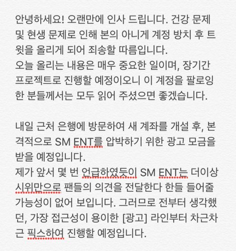 스엠 고소진행 계속 하고있어 걱정마