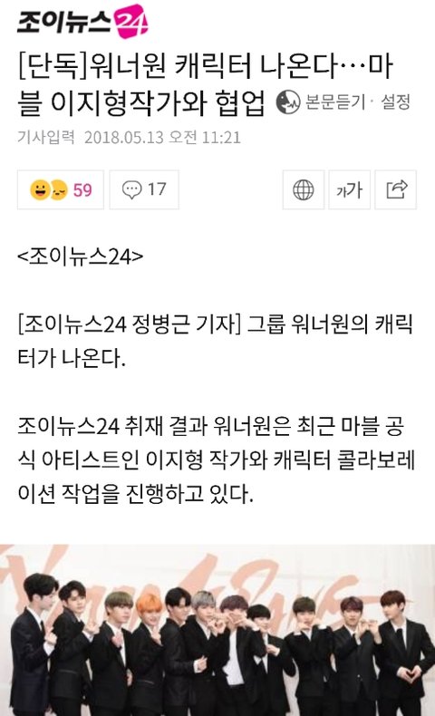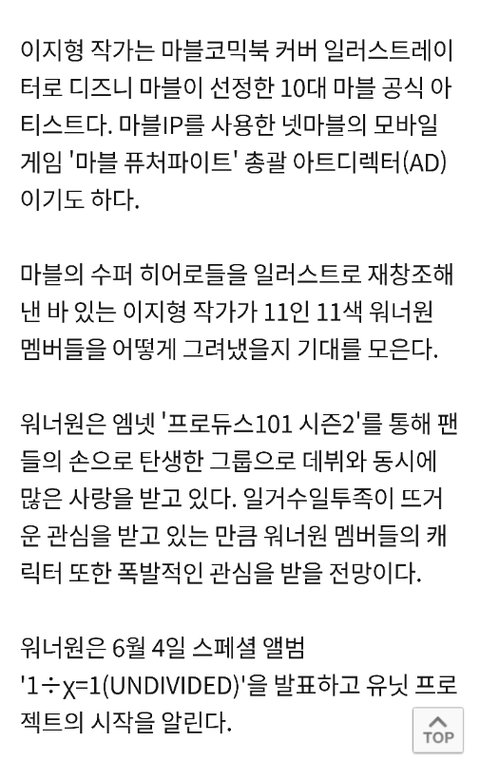 기사)워너원 캐릭터 나온다…마블 2지형작가와 협업