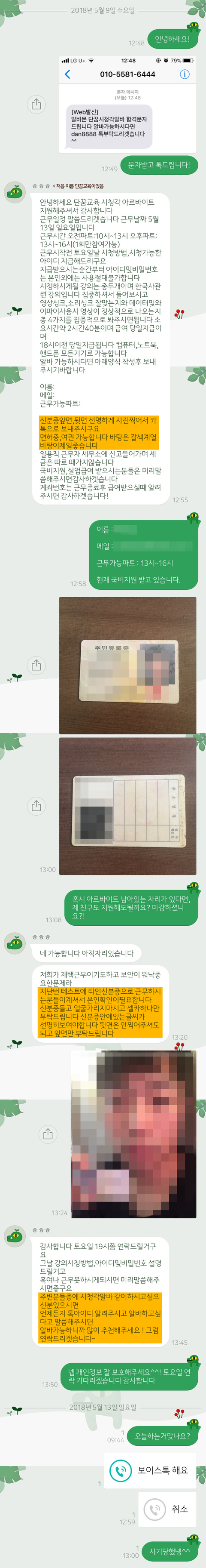 이건 제가 알바에 지원했다는 이미지에요.이런 식으로 올라오면 주의하세요!