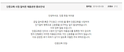 제가 알바 구하던 날 단꿈교육에서 공지를 했었네요,