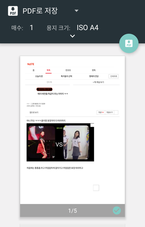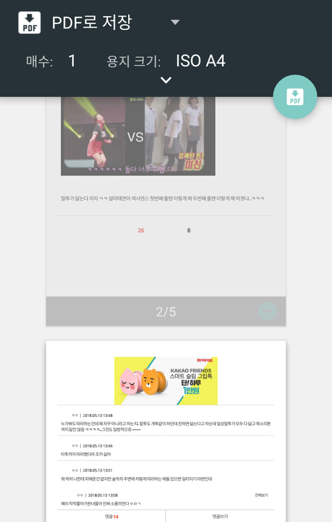 2. 인쇄 누름///인쇄가 없다면 공유 누르면 있을 거임
