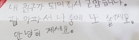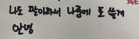 또 지후가 맞춤법 틀리게 적은 부분 똑같이 틀려서 써주고 나 진짜 지금 눈물 또록 흘릴 거 같ㅇ아 어떡해 김태형 진짜 천사아니야 .... ? 진짜 지후가 쓴거 하나하나 읽어가면서 답장한거 ㄹㅇ..