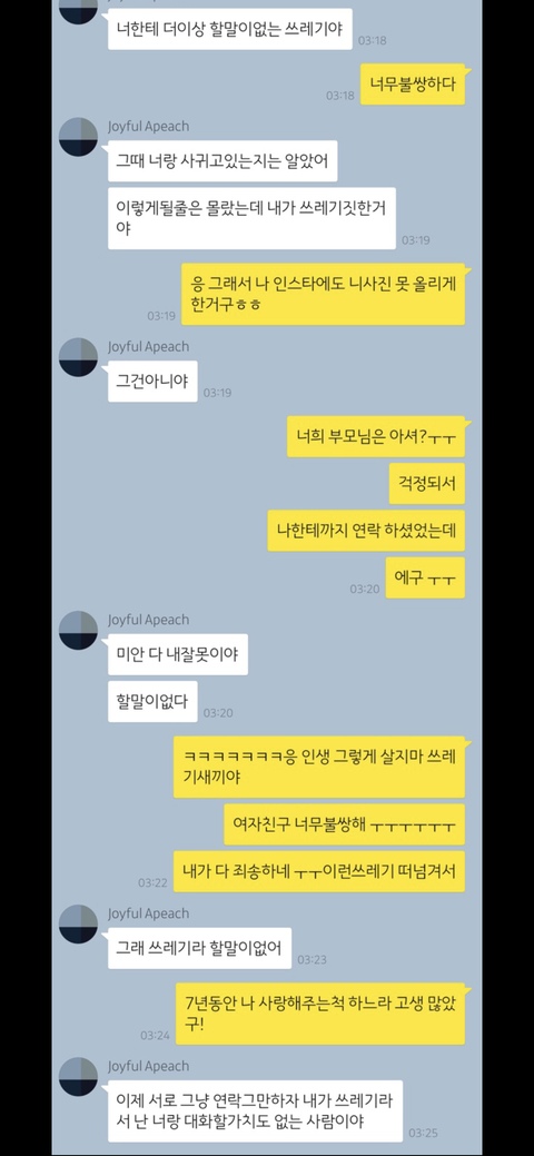 7년동안 저에게 믿음을 줬었기에 어떤 의심조차 하지 않았고 아무런 간섭을 안했더니 저 몰래 이런짓을 하고 다녔네요,,,,,,