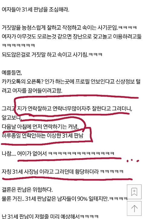 그다음날 아침에 연락이 없었던게 그렇게 분했어? 세상 살다살다 이런 작은 일가지고도 열내는 니가 참 한심하다 판남 만나지 말고 현실세계에서 만나라