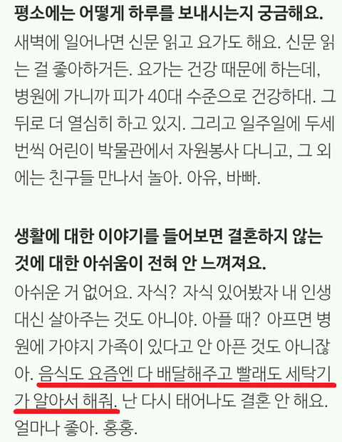 "요즘엔 음식도 다 배달해주고, 빨래도 세탁기가 알아서 해주는데 전업주부는 놀고 먹지~"