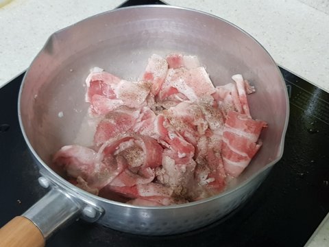 먼저 돼지고기를 먹기좋게 잘라서 볶다가,
