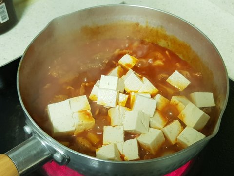 감자가 어느정도 익으면 두부를 넣고