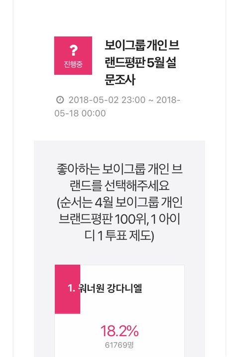 공지에도 직링있던데 1아이디 1퉆이니까 빨리 한표 보태줘