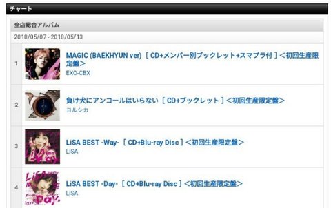 5월 둘째주 타워레코드 종합 앨범 주간 차트1위 MAGIC 백현 ver