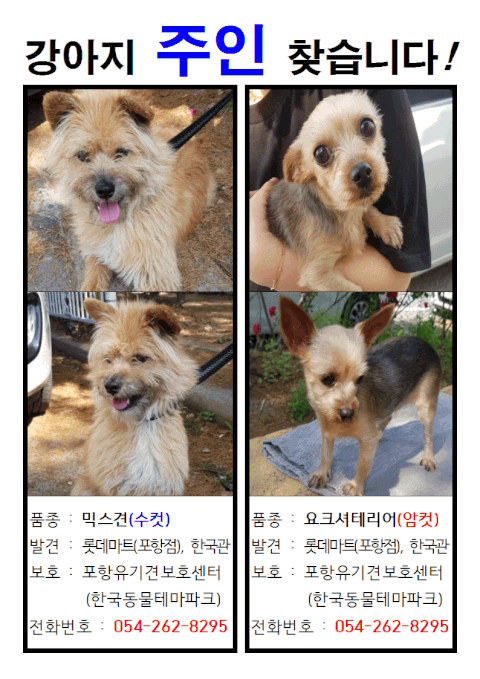 강아지들의 주인이시거나 본적있으신분은 위 유기견센터에 전화부탁드립니다.