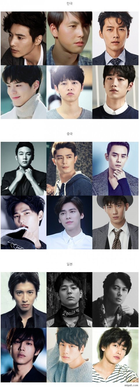 한중일 시대별 미남 배우들