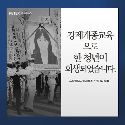 안녕하세요?요즘 전국적으로 강제개종금지법이 화두로 떠오르고 있습니다.그 이유는 무엇일까요??왜냐면 종교자유국인 대한민국에서 교단이 다르다는 이유만으로 강제로 개종을강요하는 일이 빈번히 발생하고 있기 때문입니다.그 결과 지난 1월!! 광주에서 꽃 다운 청년이 질식사하는 사건이 벌어지게 되었는데요.