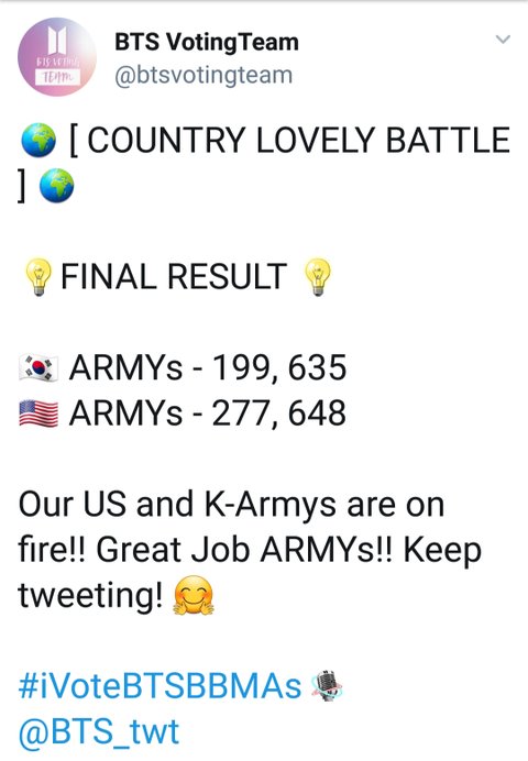 일단 인구수 차이가 반은 먹고 들어가기 때문에 ㅠㅠㅠㅠㅠ 한국 아미들 외랑둥이 머릿수 상대로 저정도 따라잡는 것도 대단한거임