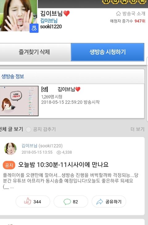 아프리카 즐찾돼있는줄 몰랐는데 알림뜨길래 가봤는데 복귀했더라