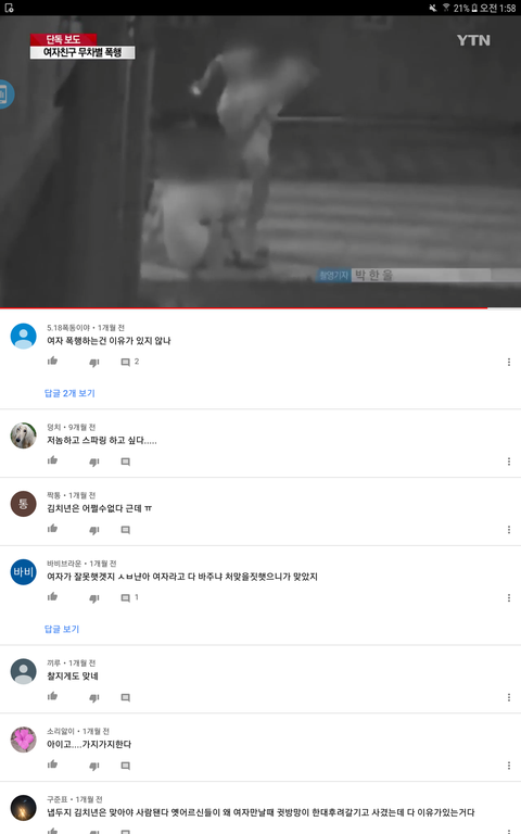 근데 진짜 유투브댓글들 보면 맞는데 이유있다~김치년은 맞아야돤다 ㅇㅈㄹ하면서 씨부리는 애들이 있다는게 소름이다