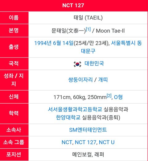 https://namu.wiki/w/%ED%83%9C%EC%9D%BC(NCT)