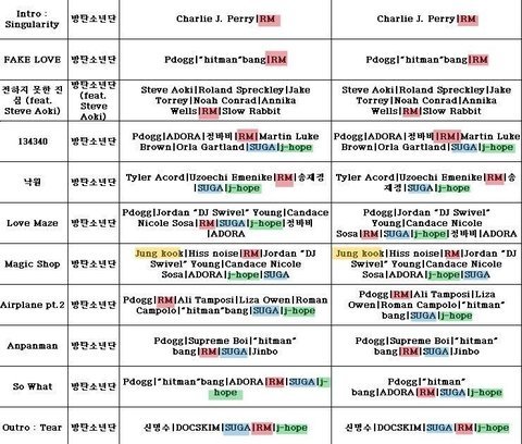 그 와중 RM 전곡 참여 / 꾸준히 참여하는 랩라