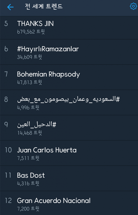 전세계 실트 5위에 thanks JIN이 올라와 있네!!!!