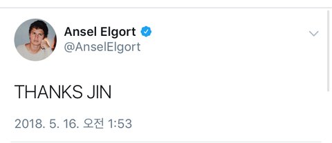 이게 뭔가 싶어 봤더니 트친인 안셀 엘고트가 석진이에게 고맙다고 했고 그 뒤로 외랑둥이중 1명이