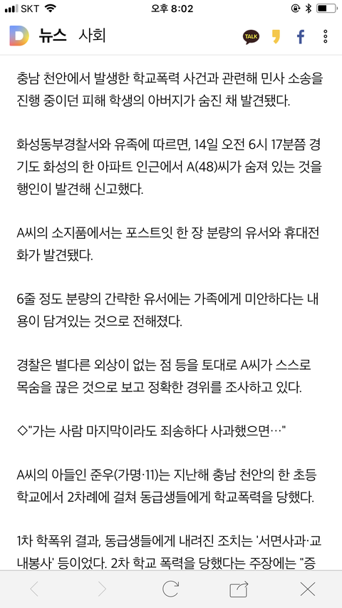 피해자아빠 자살이후 기사
