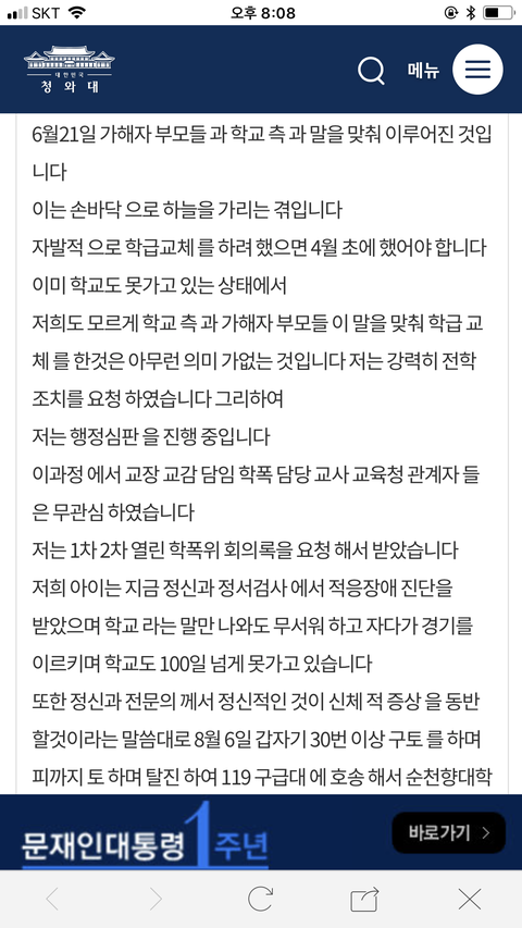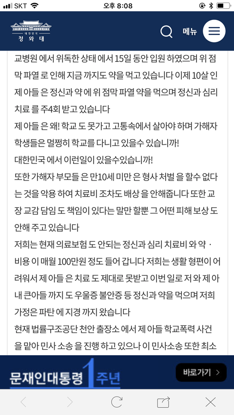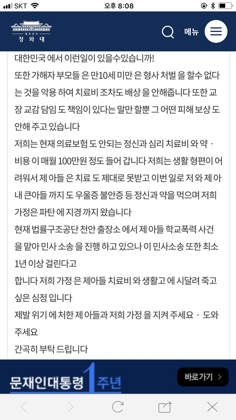 생전 피해자아빠가 올린 청원글