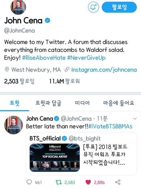 존 시나님이 뷜보드 투표해주심